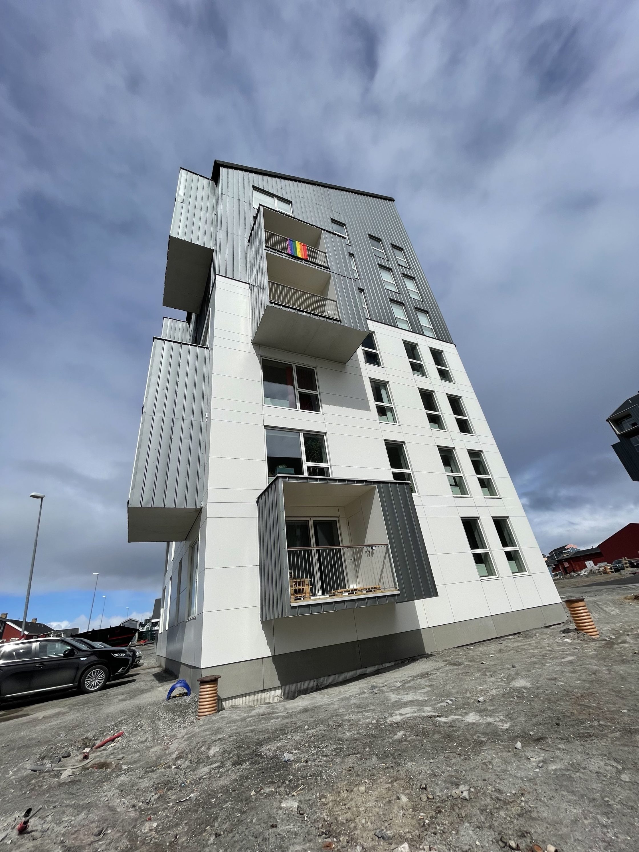 The Rainbow flag proudly waving in the subtle breeze of a summer-ish day in Nuuk, Greenland.